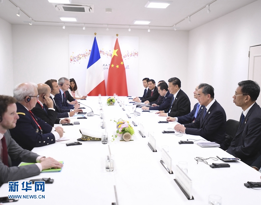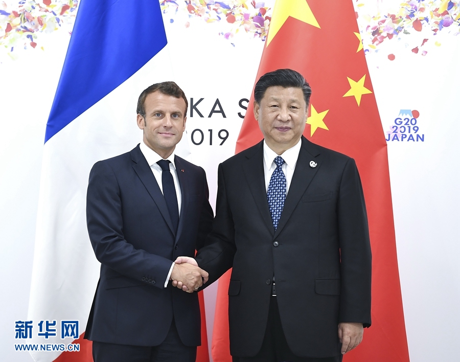6月29日,国家主席习近平在大阪会见法国总统马克龙。 新华社记者 燕雁 摄