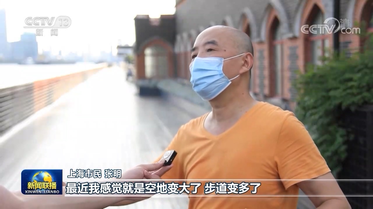 上海市民 张明:最近我感觉就是空地变大了、步道变多了、绿植的覆盖率变多了,看看建筑、看看风景,很爽的感觉,加上蓝天。