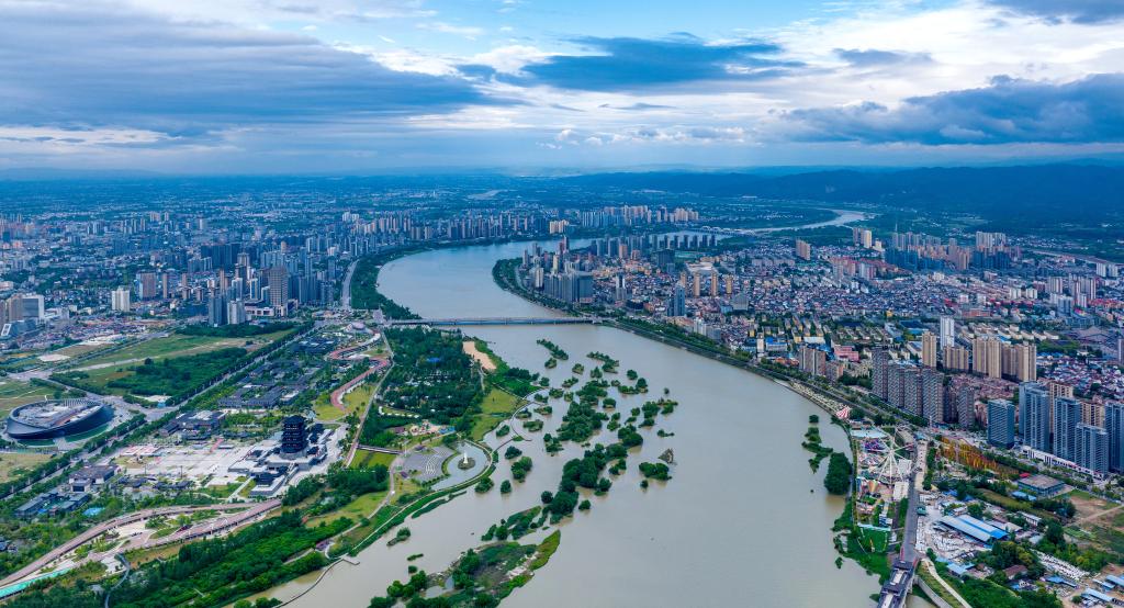 陕西省汉中市汉江两岸景色。新华社发(李伟 摄)