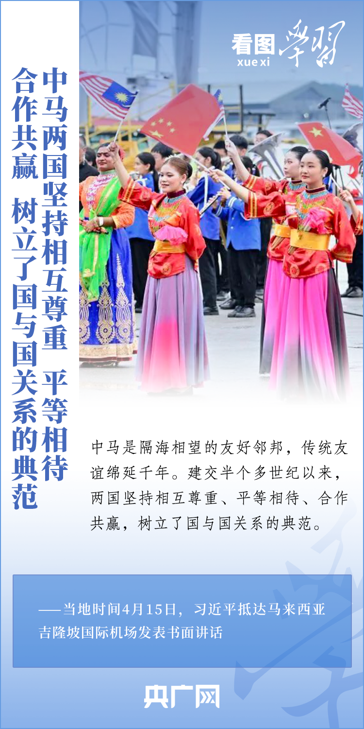 “中国和马来西亚是好邻居、好朋友、好伙伴,常来常往、亲如一家。”4月15日至17日,国家主席习近平应邀对马来西亚进行国事访问。访问期间,习主席高度评价中马关系,就共同打造高水平战略性中马命运共同体,谱写睦邻友好、团结合作新篇章,开启中马关系新的“黄金50年”擘画蓝图和愿景。一起来学习!