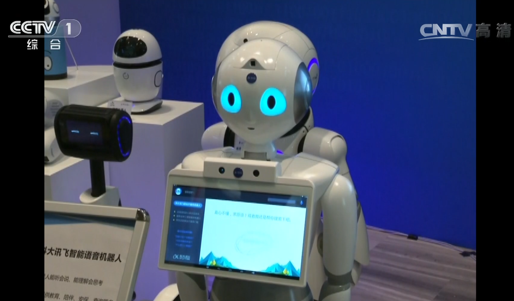 △ 2016年4月26日,习近平总书记考察中国科技大学。这是与总书记互动的机器人“小曼”。(视频截图)