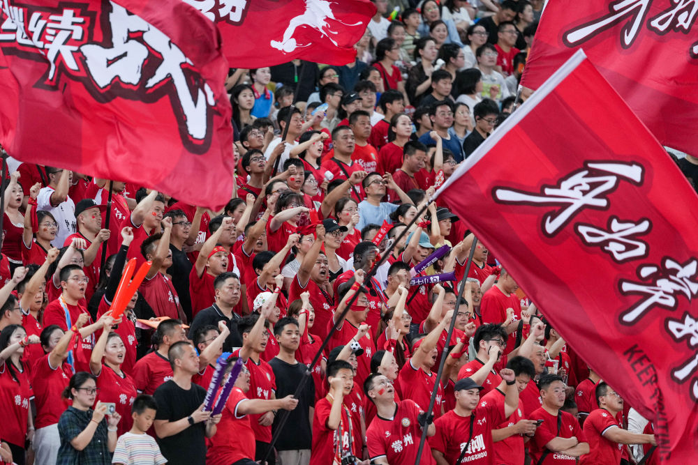 2025年7月20日,2025江苏省城市足球联赛第七轮比赛中,常州队球迷在场边加油。新华社记者 李博 摄距离新赛季开始还有2个多月,已有24家赞助商就位,其中不乏国际知名品牌,赞助总额超过1个亿。江苏省体育产业集团董事长顾晔感慨地说:“一个省级业余赛事被抢着赞助,放在以前想都不敢想,这正是体育消费潜力充分释放的印证。”